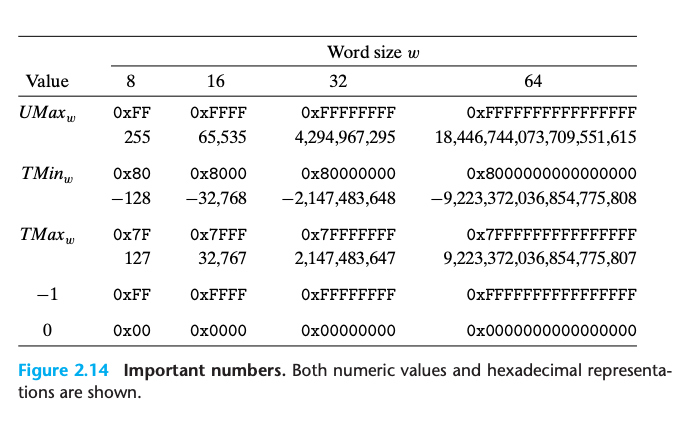 The following table gives the two’s complement representation of and , and the unsigned representation of . Notice that the bit pattern of and are identical.